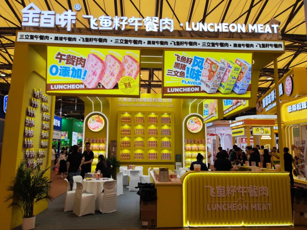 在剛剛落幕的2025年青島漁博會,金百味以卓越之姿驚艷全場,圓滿收官,為行業(yè)帶來一場味覺與視覺的雙重盛宴!此次展會,金百味憑借獨特的產(chǎn)品魅力,吸引了來自全球各地的目光。多元市場開拓 全球合作深化展會期間,金百味展位總接待超200人次,人氣爆棚!收獲了百余名意向客戶,這些客戶來自世界各地,涵蓋了東南亞的柬埔寨、越南、印尼、泰國,他們對金百味產(chǎn)品的口味和品質(zhì)贊不絕口,認為非常符合當?shù)厥袌鰧γ朗扯嘣淖非?;北美地區(qū)的美國、加拿大客戶,對金百味的創(chuàng)新理念和嚴格品控高度認可;歐洲的法國、意大利、德國、西班牙、捷克以及俄羅斯的客戶,也紛紛表達合作意向,覺得金百味產(chǎn)品在包裝和口味上都能很好地融入歐洲市場;就連遠在南半球的澳大利亞客戶,也被金百味的獨特風(fēng)味吸引,期待攜手打開澳大利亞市場大門。明星產(chǎn)品閃耀 味蕾征服世界 金百味此次重點展示的午餐肉和烏冬面,成為全場焦點。其中飛魚籽和三文魚午餐肉采用創(chuàng)新配方,三文魚肉質(zhì)鮮嫩可見,顆顆飛魚籽飽滿Q彈,入口能感受到籽的爆汁感與魚肉的細膩感交織,整體呈現(xiàn)出清新的淺橙色澤,鮮味濃郁卻不腥膩,無論是直接食用還是搭配意面和面包亦或者是煎制食用,都能解鎖豐富美味